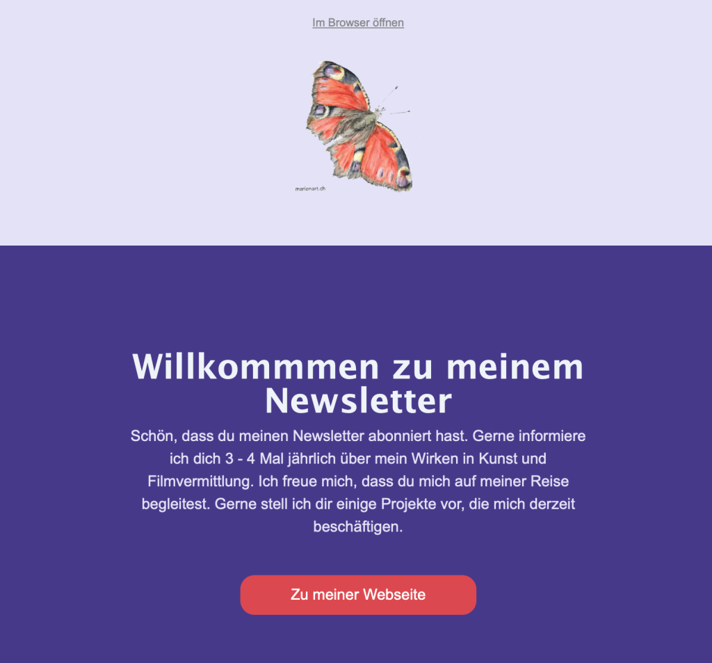 3 – 4 Mal im Jahr versende ich meinen Newsletter, um über meine neusten Arbeiten und Angebote auf dem Laufenen zu halten.